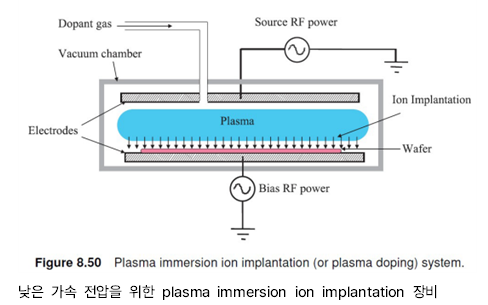 P형 dopant의 경우, 질량이 작고 확산 계수가 크기 때문에 주입 후 열처리시 쉽게 퍼져 Junction Depth가 커지고 tail이 생긴다. 따라서, 이를 극복하기 위해 Heavy molecule을 사용하거나 낮은 에너지(가속 전압)으로 주입한다.