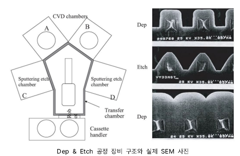 이 기술의 공정 장비에는 CVD와 Etch, Sputtering Chamber가 들어가며, HDP CVD가 적용되고 있다.