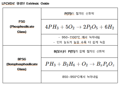 | Extrinsic SiO2 | - SiO₂ 내부에 인(P), 붕소(B) 같은 다른 원소들이 도핑된 형태의 산화막 |