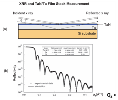 X ray의 입사각이 매우 작으면 표면에서 반사되는 것을 이용한 방식으로, 상단 표면 및 계면에서 반사되어 간섭 패턴이 발생한 것을 분석하여 막의 두께, 밀도, 거칠기를 측정한다.