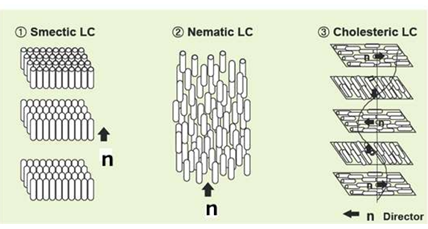 LC 종류는 Nematic Phase, Smectic A, Smectic C, Cholesteric 등이 존재한다.