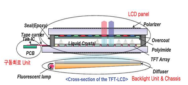 TFT-LCD는 스스로 빛을 내지 않기 때문에 별도의 백라이트가 필요하다.