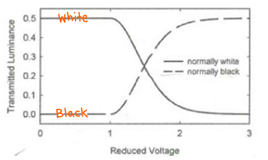 따라서, 전압을 걸면 밝아지는 normally black mode이다.