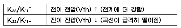 STN은 전기장에 따른 LC 분자 변형이 탄성 계수 (K값)의 비율에 의해 결정된다.